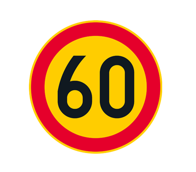 Speed limit signs in Finland are circular with a red border and a yellow background, displaying the maximum permitted speed in kilometers per hour.